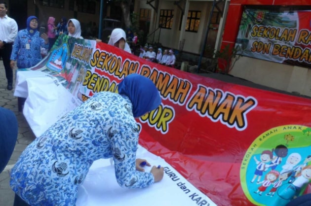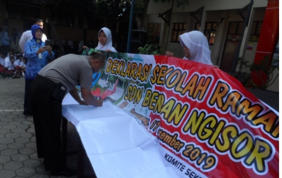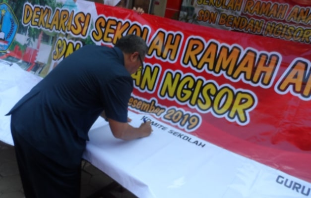 Deklarasi ini di tandatangani oleh perwakilan orang tua murid kelas 1-6, komite, korsatpen babinsa, babinkamtibnas, lurah Bendan Ngisor dan siswa siswi.